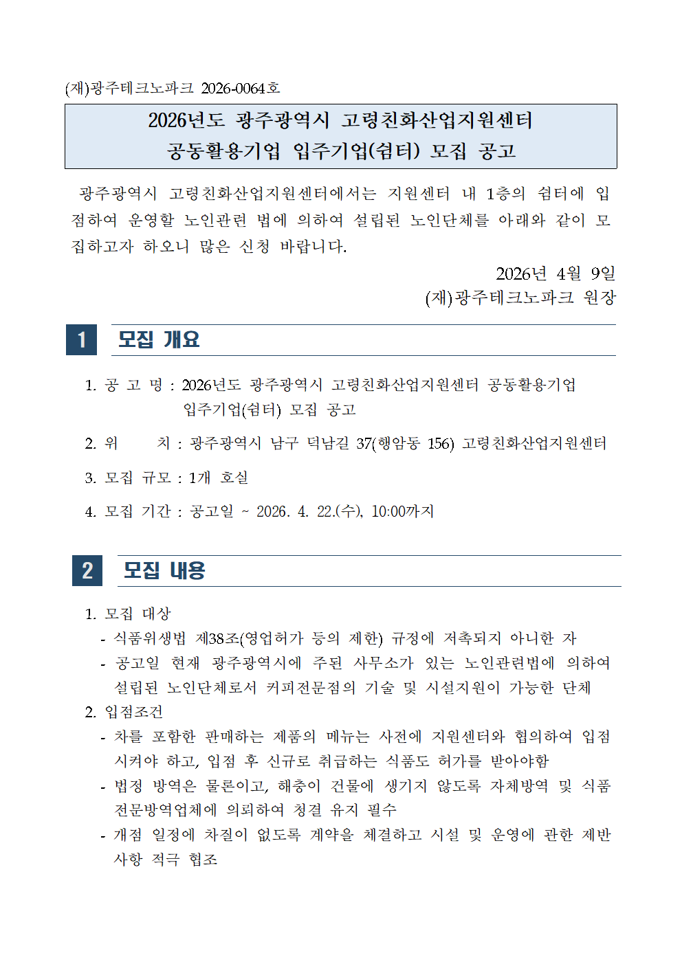 2026년도 고령친화산업지원센터 공동활용기업 쉼터 모집
