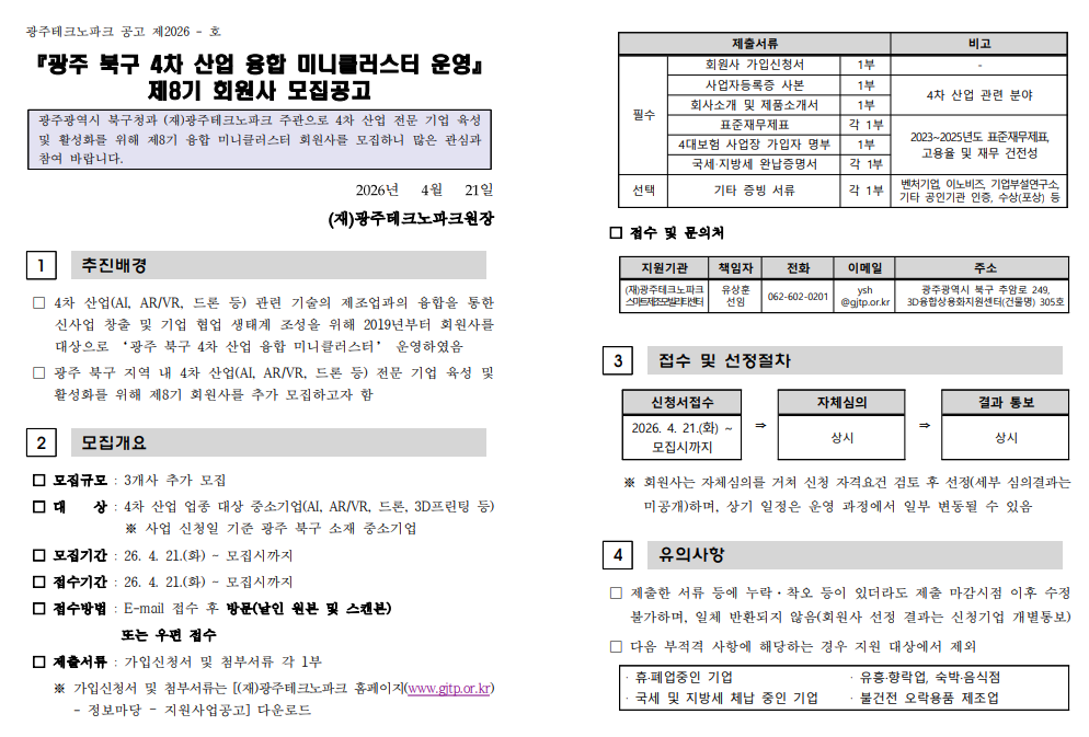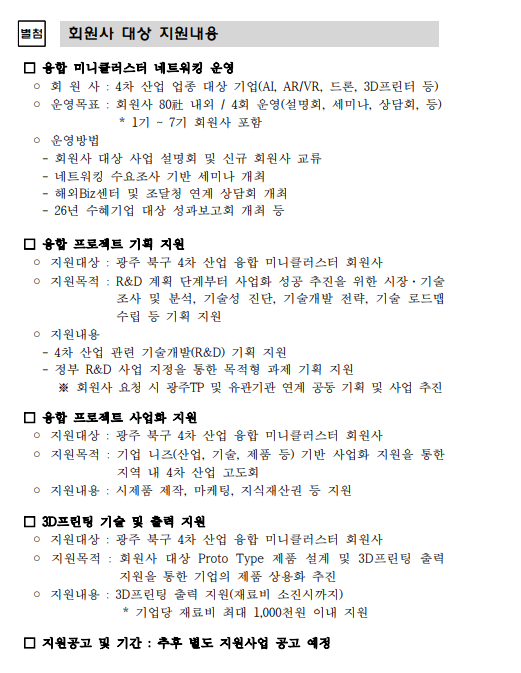 2026년 광주 북구 4차 산업 융합 미니클러스터 운영사업 제8기 신규 회원사 모집