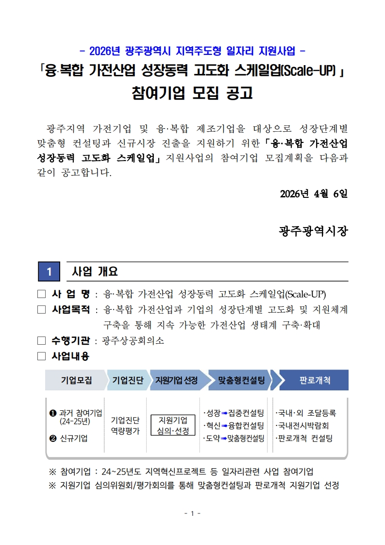 2026년 「융·복합 가전산업 성장동력 고도화 스케일업」 참여기업 모집공고
